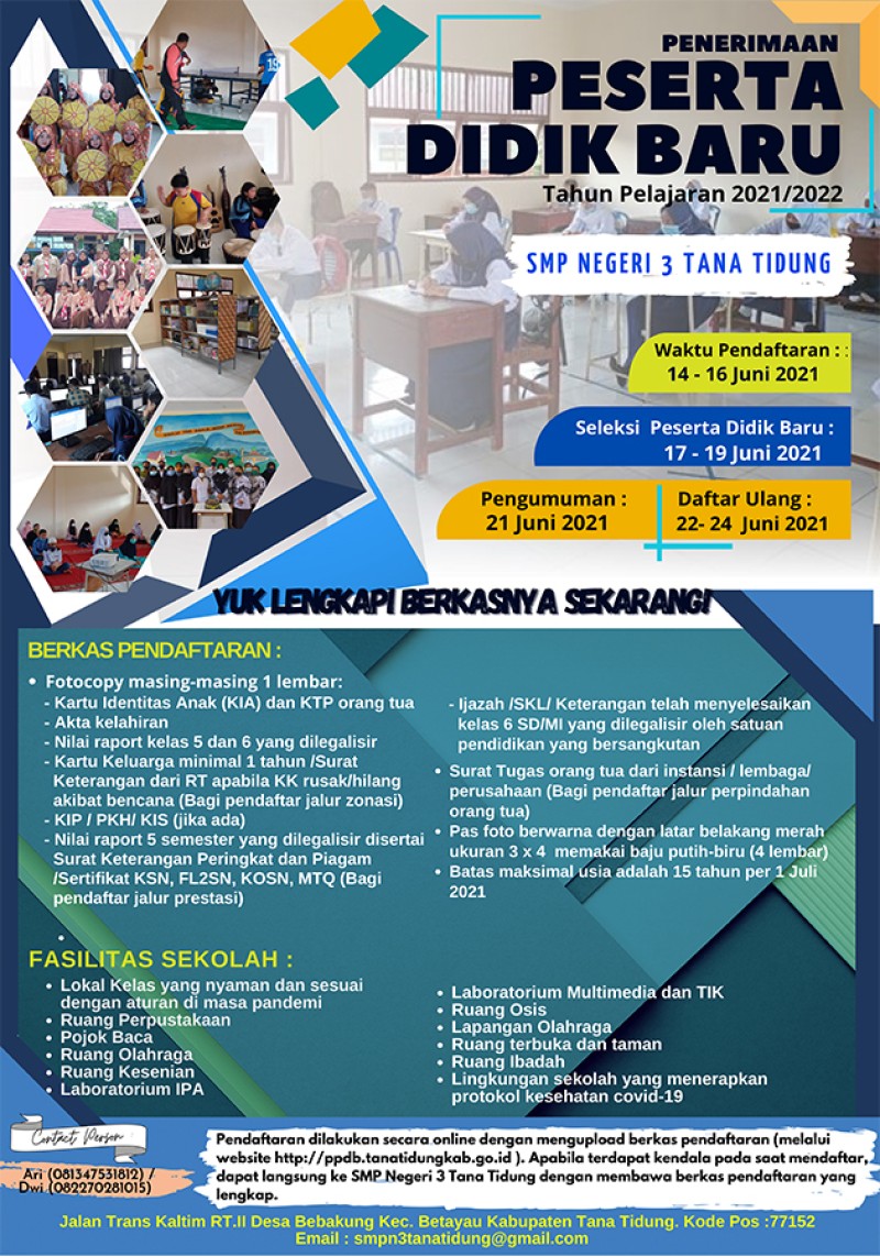 PENERIMAAN PESERTA DIDIK BARU (PPDB) SMPN 3 TANA TIDUNG TAHUN 2021